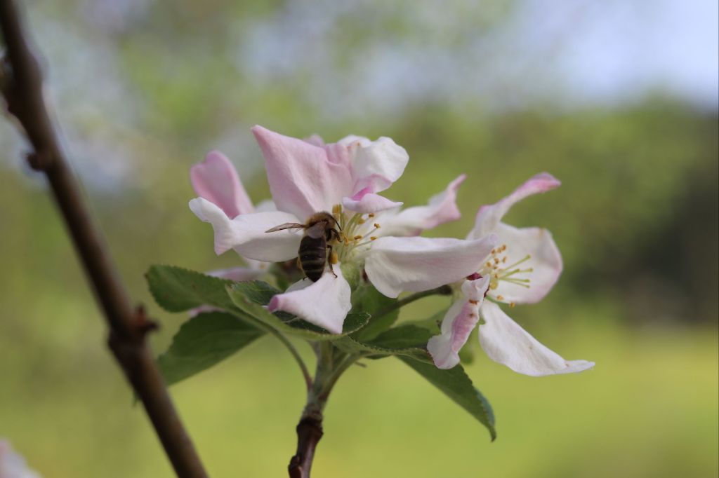 Mit dem Frühling erwacht nicht nur die Natur, sondern auch das Leben auf den Blüten. Dieses Bild zeigt einen besonders symbolträchtigen Moment: Eine Biene bei der Arbeit an einer zartrosa Apfelblüte. Der Kontrast zwischen der feinen, fast zerbrechlich wirkenden Blüte und der emsigen Biene macht deutlich, wie eng Natur und Leben miteinander verbunden sind.